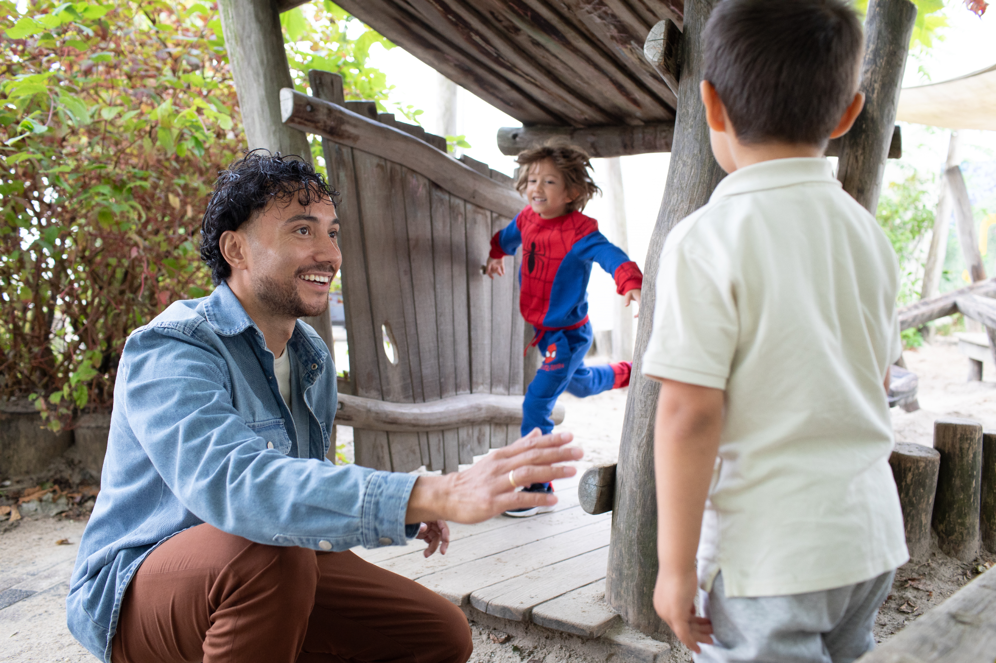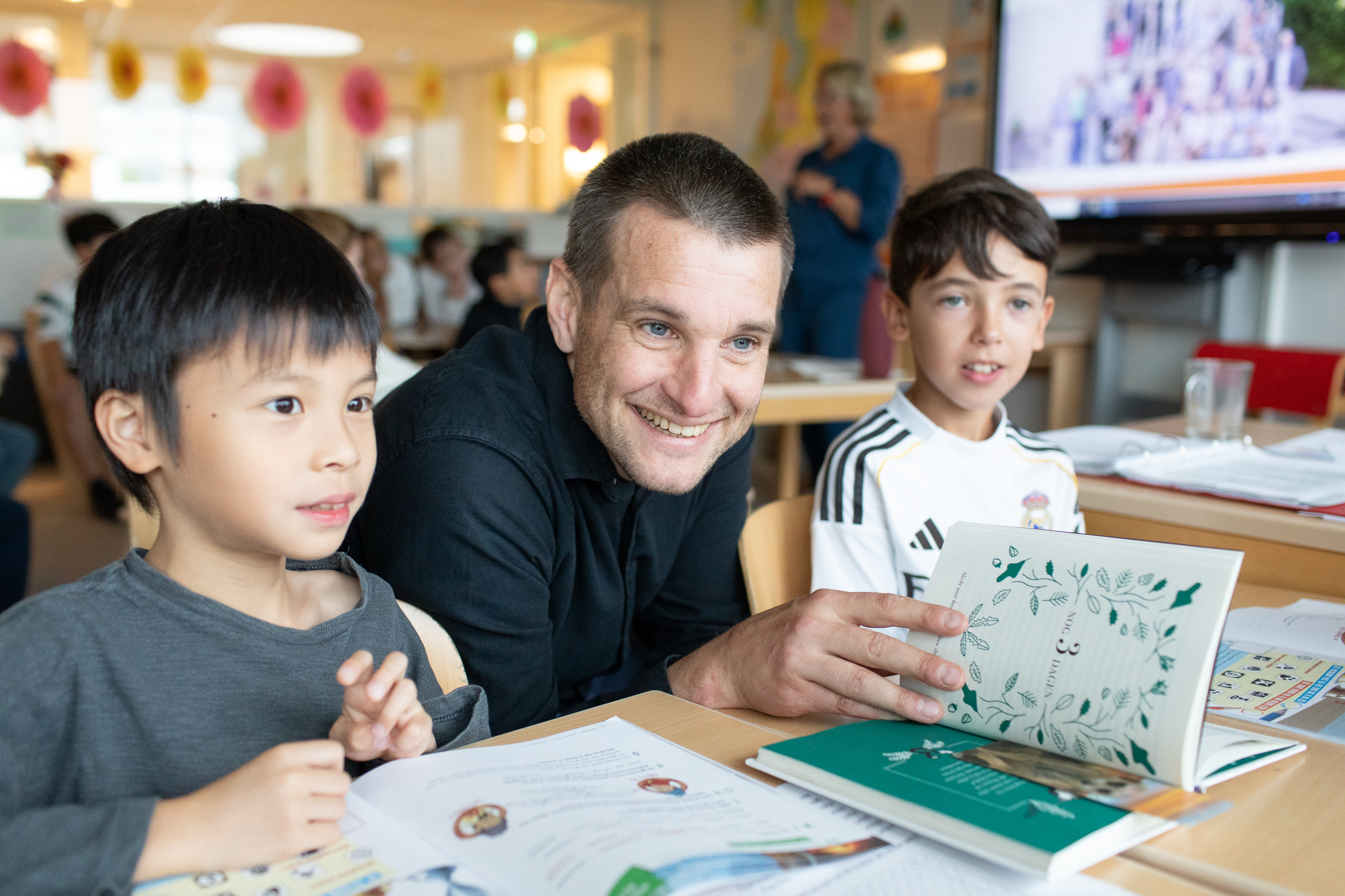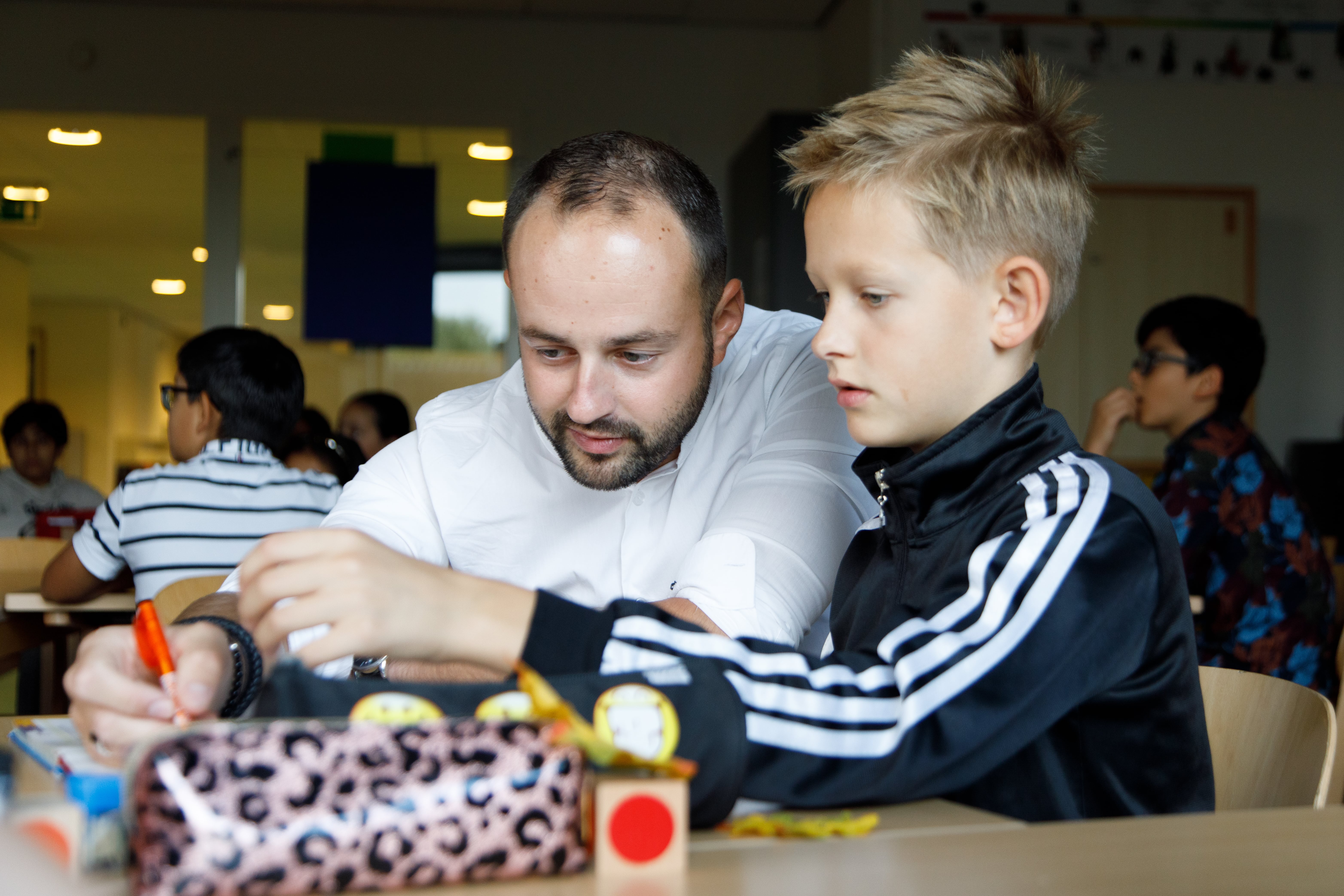 Hij geeft leuke opdrachten en spelletjes. Wij leren dan veel!
