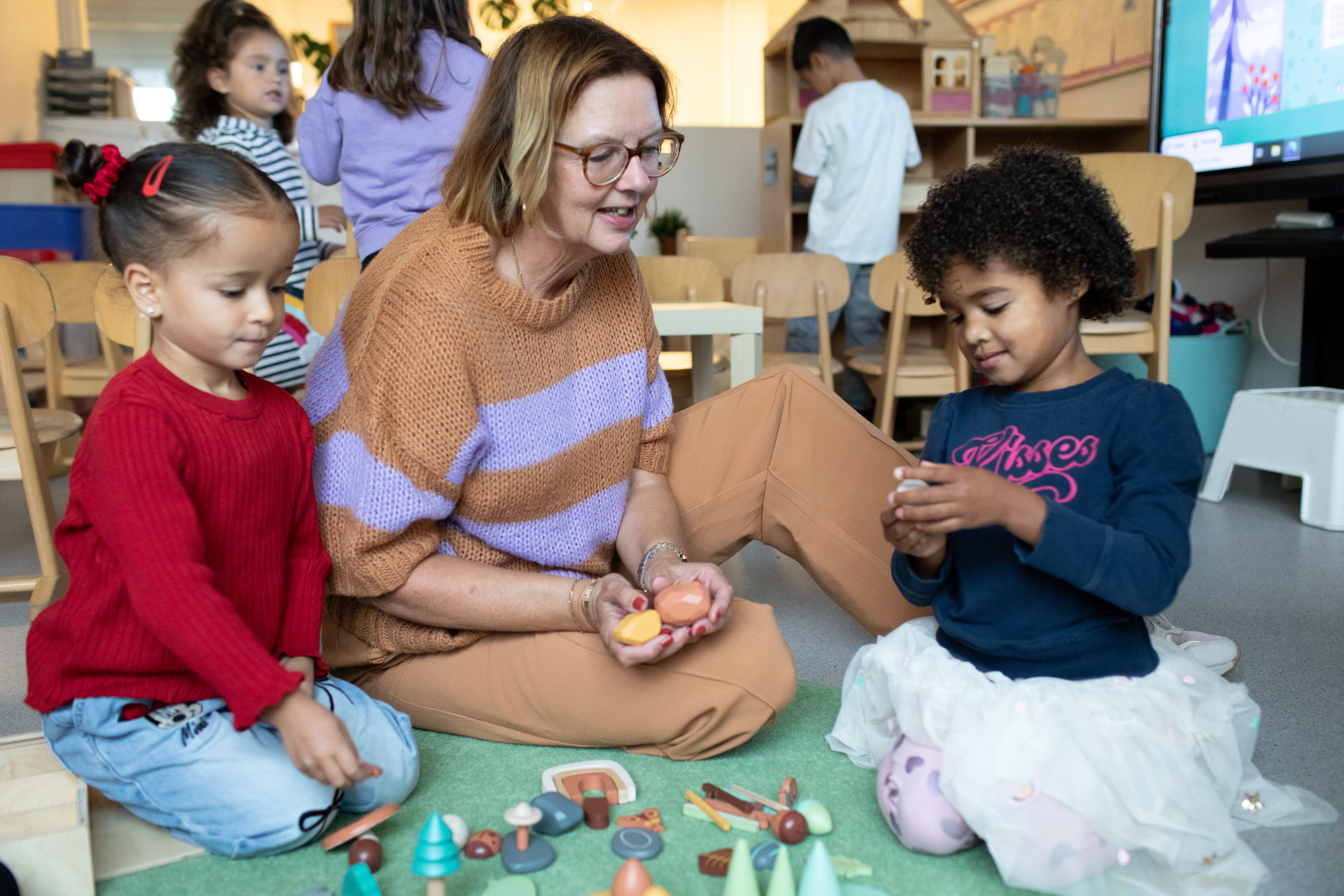 De juf verzint altijd leuke spelletjes en weet het leuk te maken in de klas.